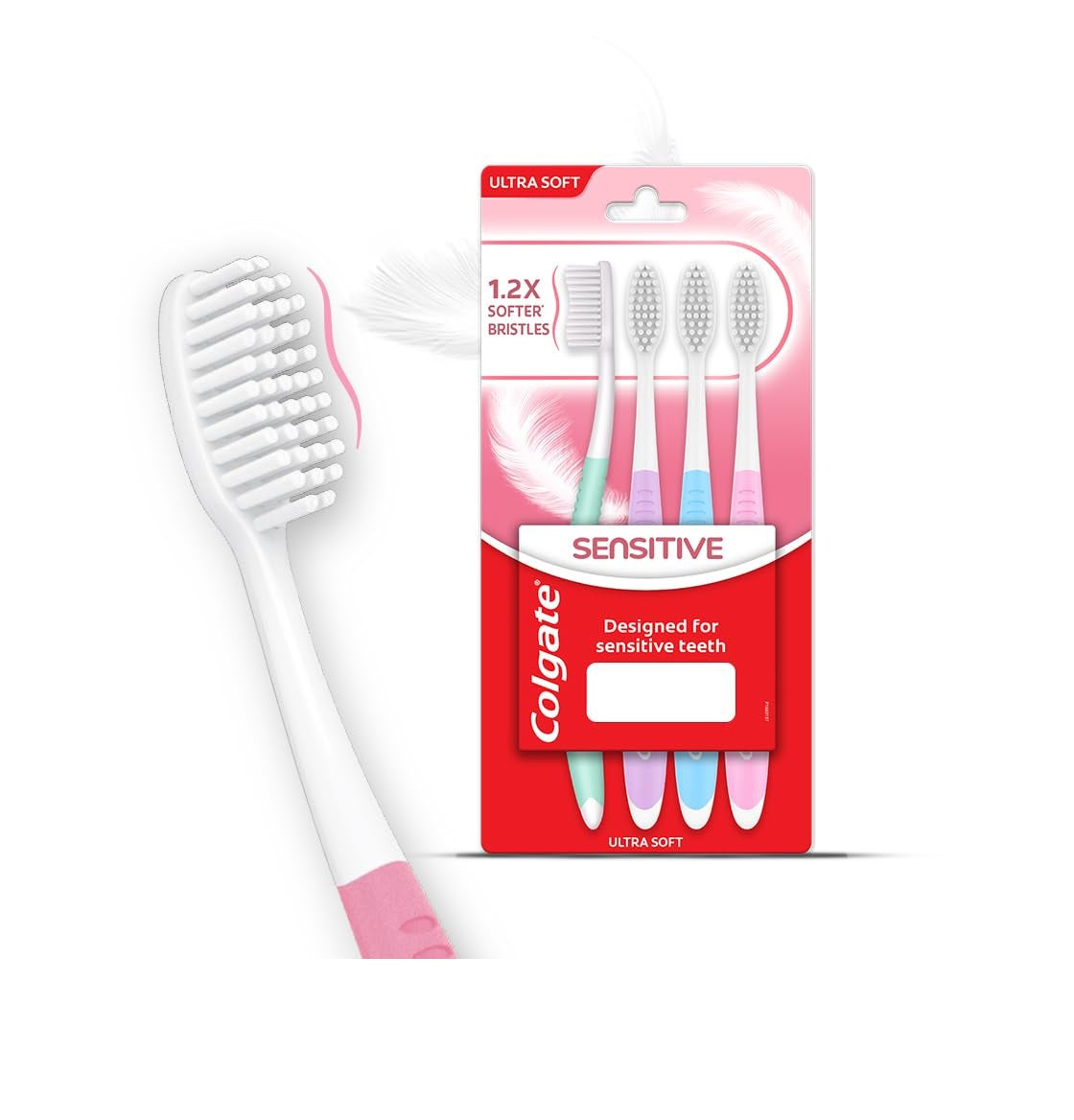 Colgate Sensitive Ultra Soft Toothbrush – 1.2x Softer Bristles, Gentle Care for Sensitive Teeth (Pack of 4)