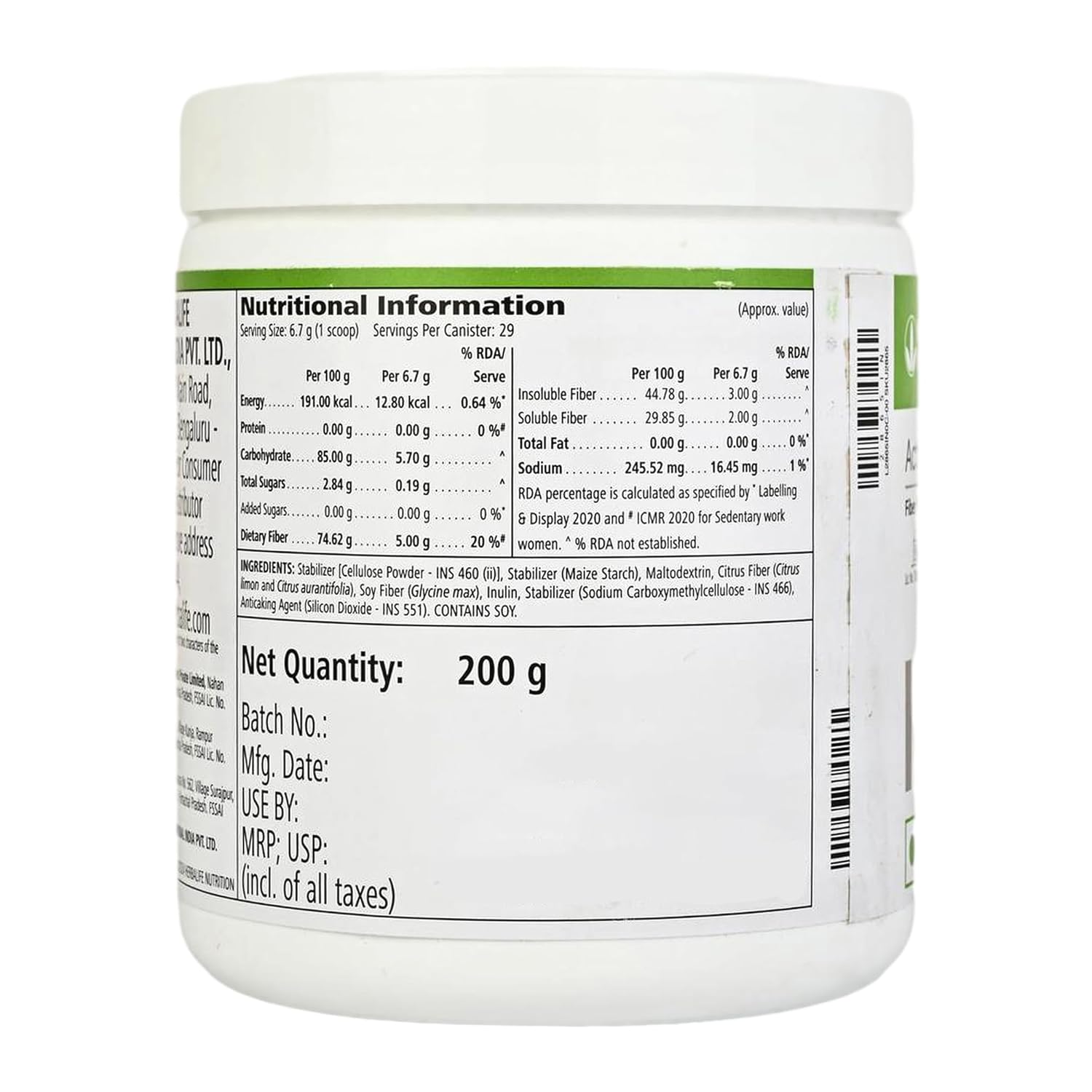 Herbalife Active Fibre Complex - Unflavoured - 200 gm