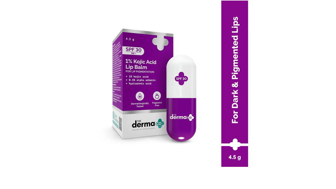 The Derma Co 1% Kojic Acid Lip Balm I With Alpha Arbutin & Hyaluronic Acid I SPF 30 PA++ 4.5 gm